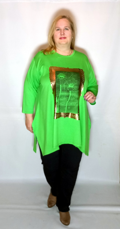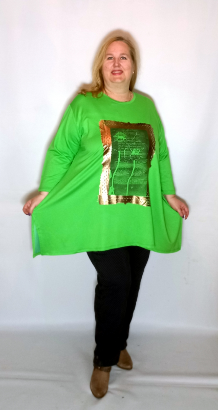 Удлиненная туника А-силуэта выполнена из высококачественного, трикотажного полотна с 95% содержанием вискозы.