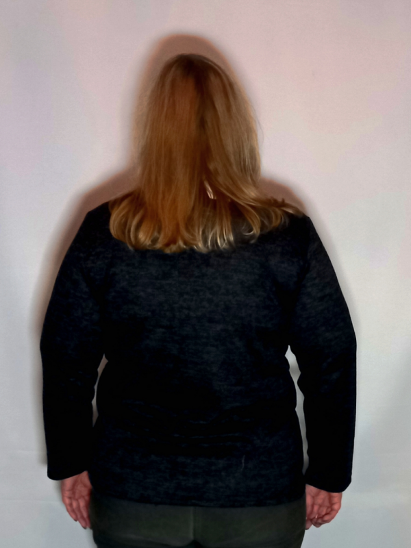 Спинка, рукав и кант на горловине из ангоры, полочка из трикотажа под кожу.