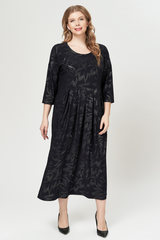 Нарядное платье из струящегося трикотажа - масло с блестящим принтом.