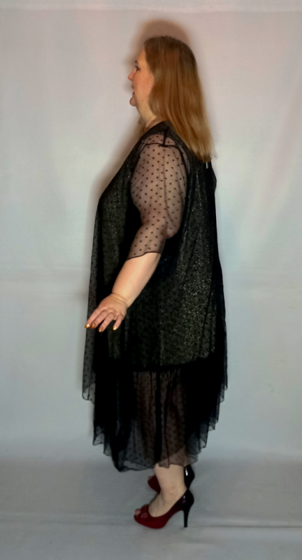 Мерки сняты с модели ( нижнее платье) свободно разложенной на плоскости без люфта (растяжки). Люфт до 7 см