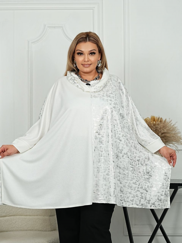 Силуэт сложнокроенный, по низу расширен "хвостами", по типу пончо.