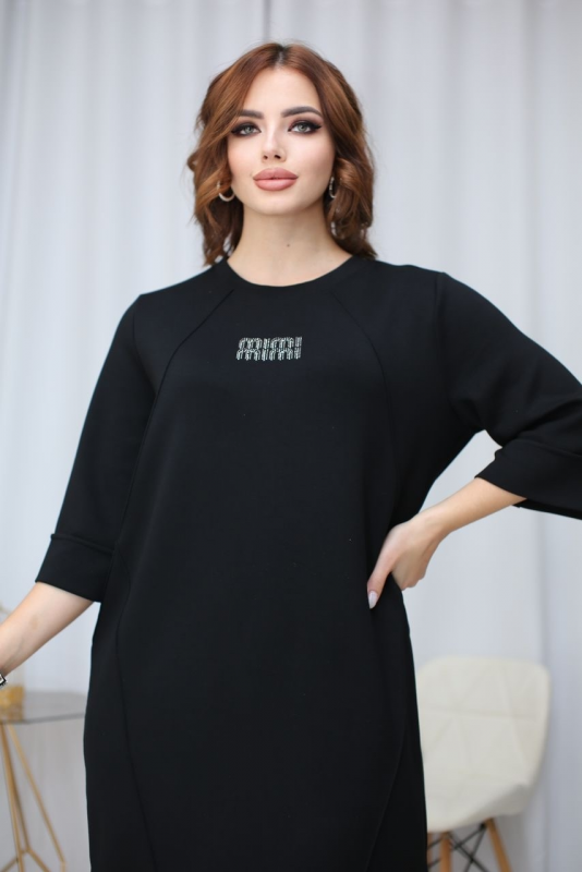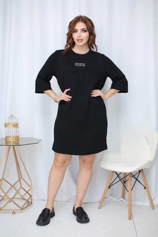 Лаконичное, но элегантное платье туника выполнено из плотного трикотажа. Трикотаж очень приятный наощупь, плотненький, хорошо скрывает шероховатости фигуры, эластичный.