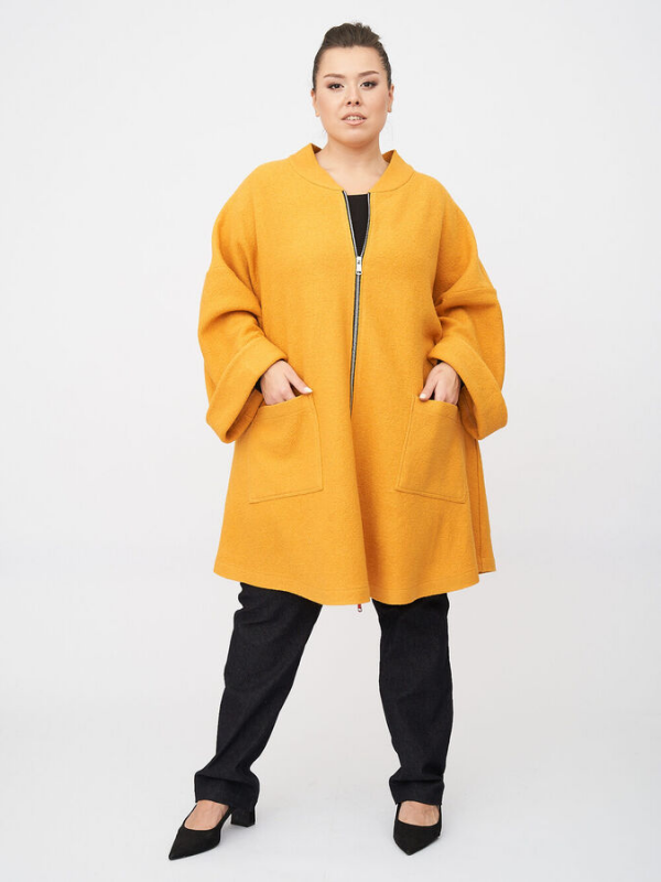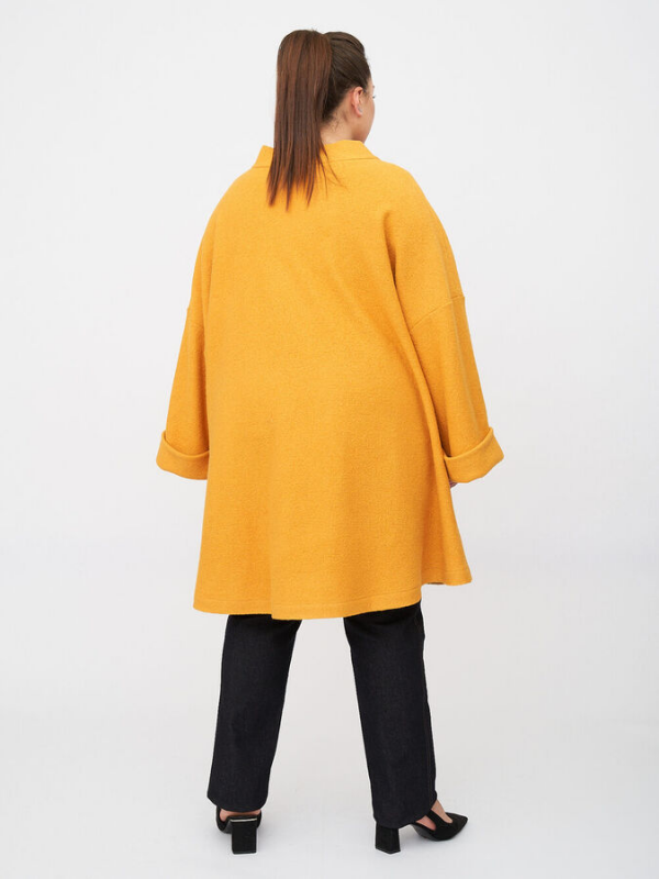 Облегченное пальто  силуэта трапеция будет непременно приковывать к вам взгляды прохожих. Пальто создано из вареной шерсти, отлично подойдет для весны и ранней осени. Важно отметить, что в данной модели нет подклада и утеплителя.